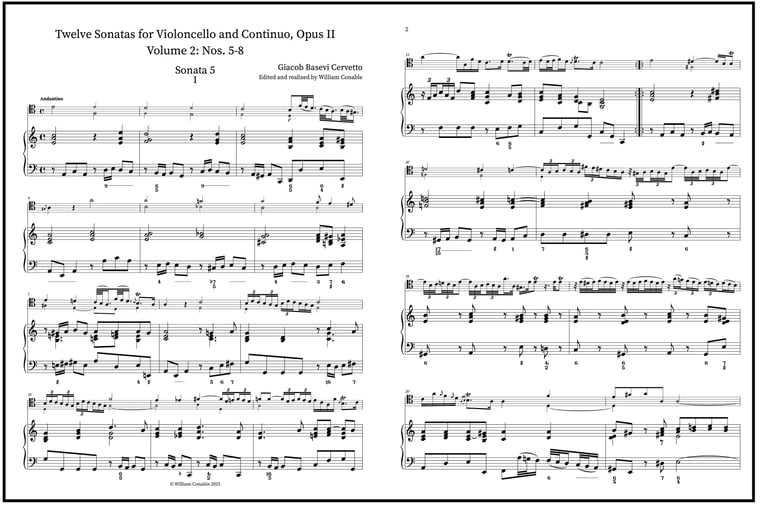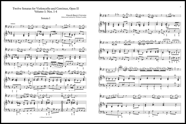 Giacob Cervetto's Opus II, Twelve Solos for a Violoncello with a Thorough Bass for the Harpsichord, was published first by Cervetto himself and subsequently in 1750 by I. Walsh. It is probable that they were first written as much as ten years earlier, since Cervetto advertised for subscriptions soon after his arrival in London. Copies exist in the British Museum and the Frank V. de Bellis Collection in San Francisco.